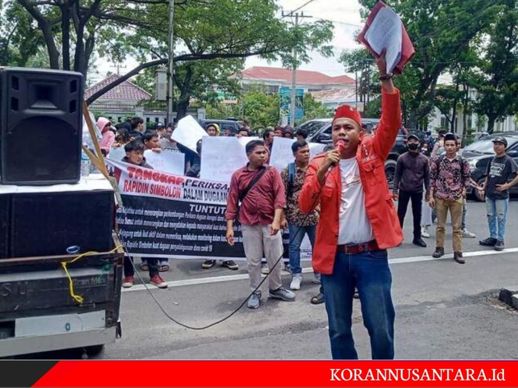 Medan – Ratusan mahasiswa yang tergabung dari DPD GMNI Sumut demo kantor Kejaksaan Tinggi Sumatera Utara untuk meminta agar Rapidin Simbolon ditangkap dan diproses dalam kasus korupsi Covid-19 di Samosir.