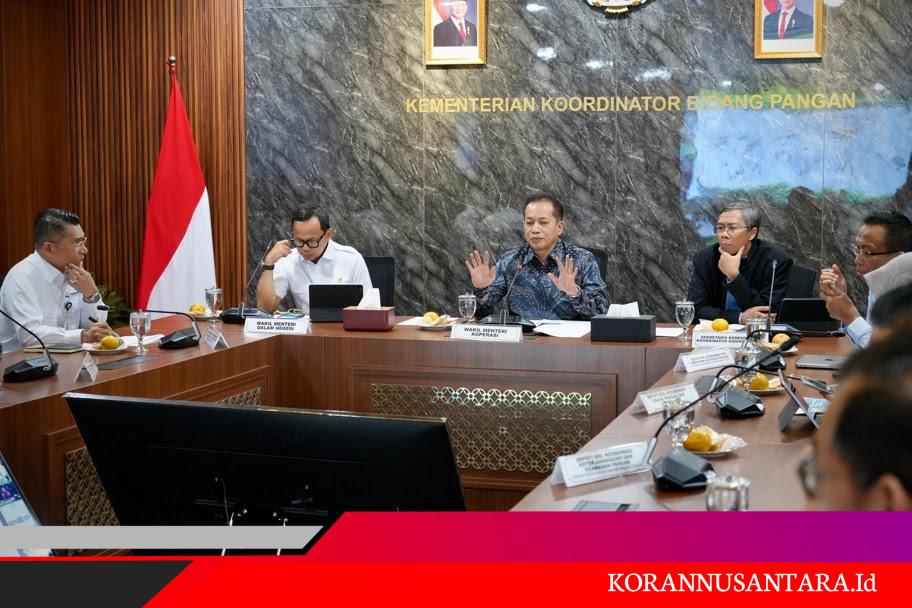 Wakil Menteri Koperasi (Wamenkop), Ferry Juliantono memimpin rapat koordinasi persiapan peresmian Kopdes Merah Putih oleh Presiden Prabowo dan Hari Koperasi di Kantor Kemenko Bidang Pangan, Jakarta, Rabu (9/7/2025).