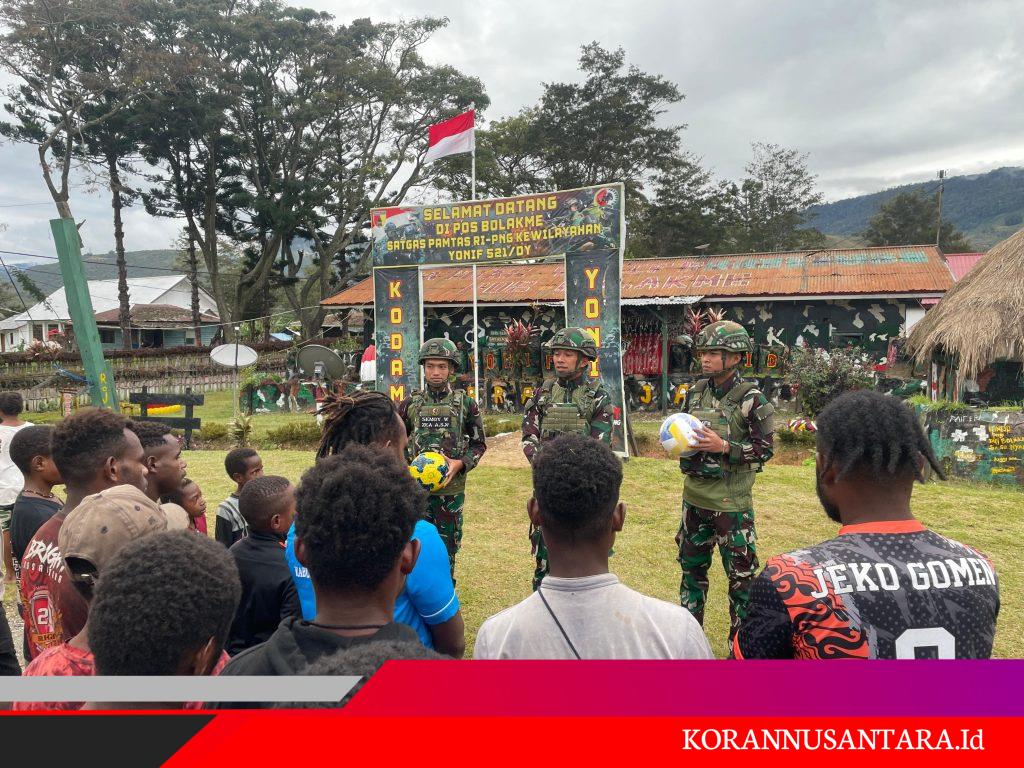 Korannusantara.id – Jayawijaya, Untuk meningkatkan minat Berolahraga serta menjalin keakraban dengan pemuda dan masyarakat, Satgas Yonif 521/DY melalui Pos Bolakme memberikan bantuan berupa bola voli dan bola kaki kepada para pemuda Kampung Bolakme, Distrik Bolakme, Kab. Jayawijaya, Papua Pegunungan. (12/7/2025).
