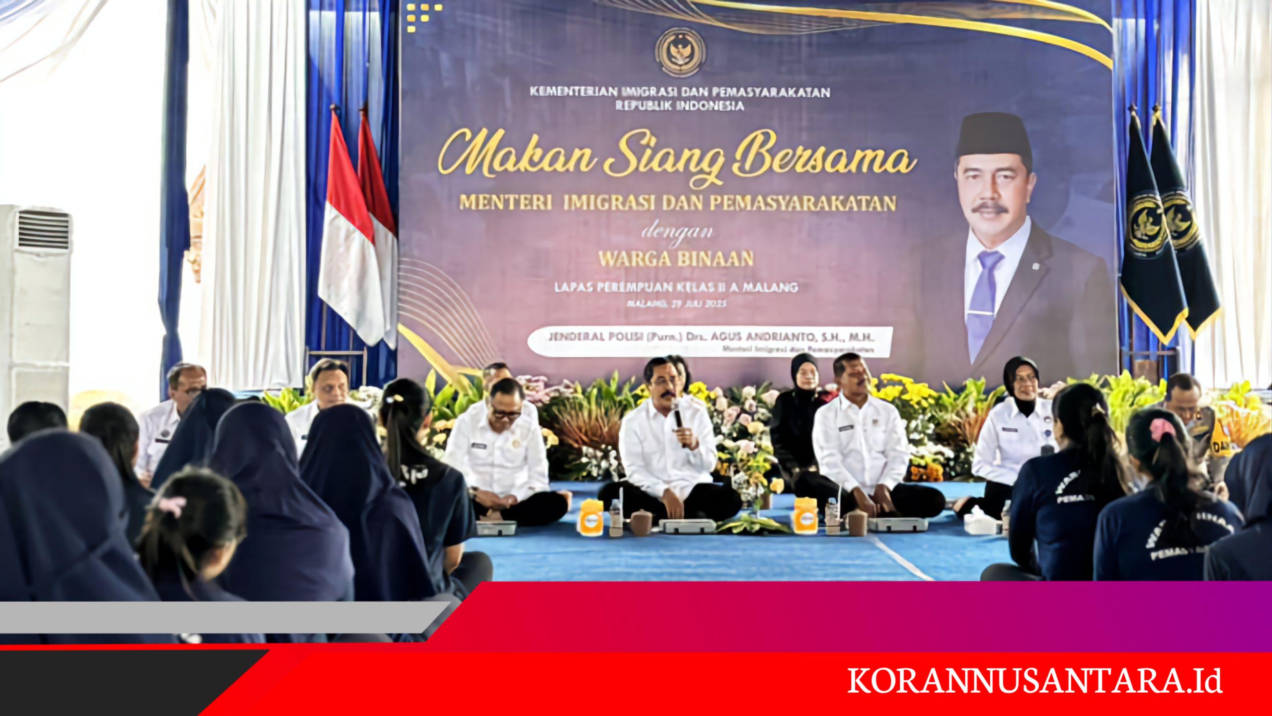 Korannusantara.id, Jakarta – Menteri Imigrasi dan Pemasyarakatan (Imipas), Agus Andrianto, makan siang bersama warga binaan di Lembaga Pemasyarakatan Perempuan (LPP) Kelas IIA Malang, Selasa (29/7/2025). Acara ini digelar untuk mempererat hubungan antara warga binaan dan petugas.
