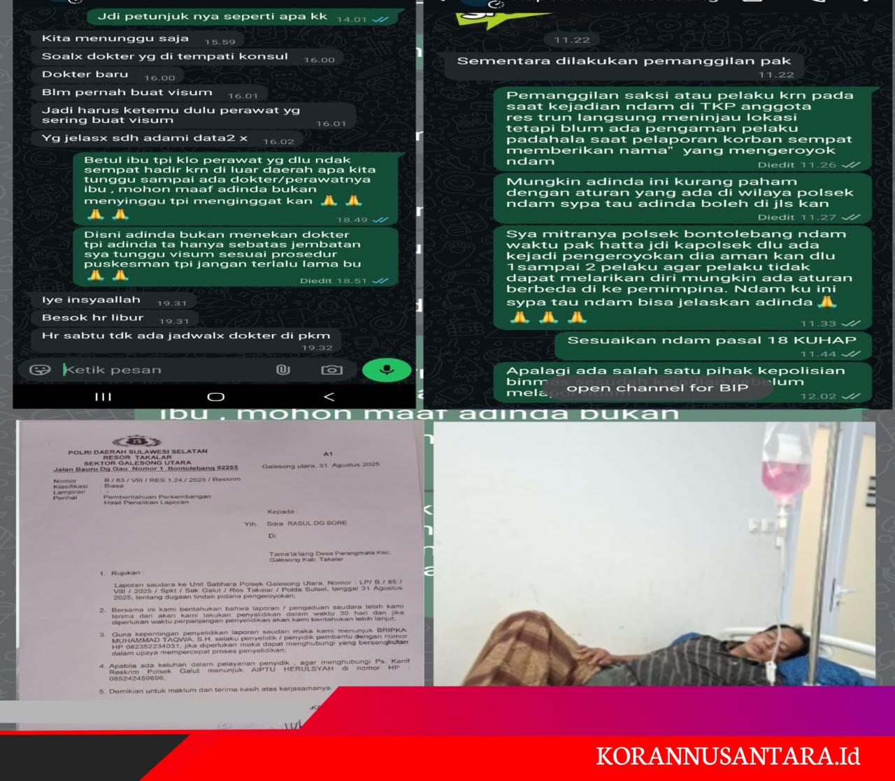 Peristiwa ini menimpa Rasul Dg Sore (48), warga Tamala’lang, Desa Parangmata, Kecamatan Galesong, yang mengaku menjadi korban pengeroyokan pada Minggu (31/8/2025) sekitar pukul 23.00 WITA di Desa Bontomajannang, Kelurahan Bontolebang, Takalar. Rasul melaporkan kasus tersebut dengan nomor Lp/B/85/VIII/2025/SPKT/Sek Galut/Res Takalar/Polda Sulsel.