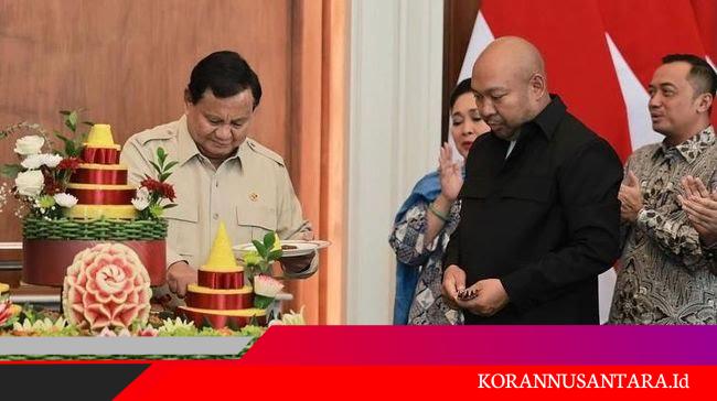 Momen syukuran kecil ulang tahun Prabowo itu digelar di Istana Jakarta siang tadi, dihadiri oleh putra Prabowo Didit Hediprasetyo, Komisi IV DPR RI Siti Hediati Soeharto atau Titiek Soeharto, hingga sejumlah anggota kabinet.