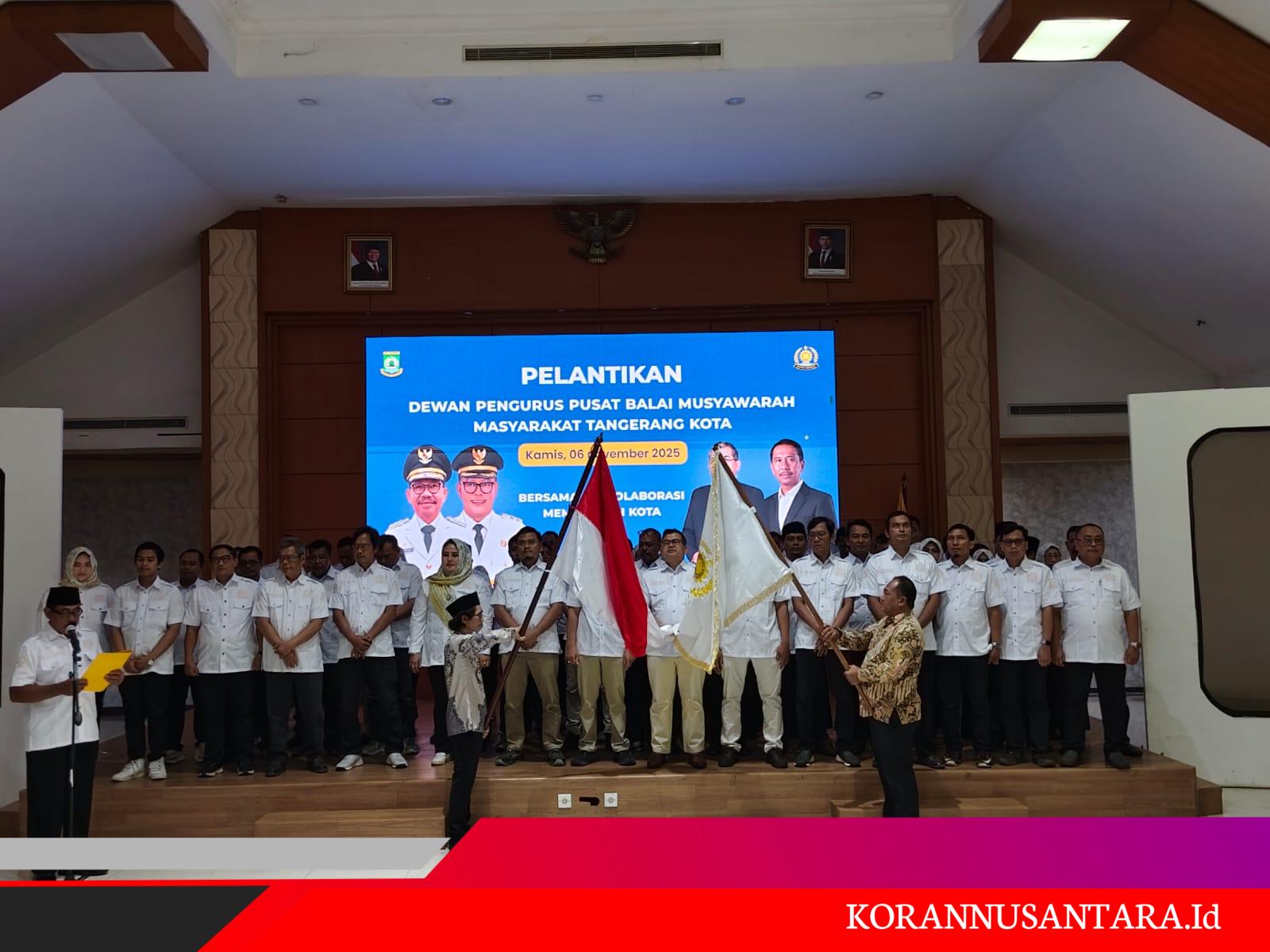 Korannusantara.id – Kota Tangerang, Pelantikan Dewan Pengurus Pusat Balai Musyarah Masyarakat Tangerang Kota (Bamus Tangkot) berlangsung khidmat dan penuh semangat kolaborasi, Aula Al-Amanah Pusat Pemerintah Kota Tangerang. Kamis (8/11/2025).