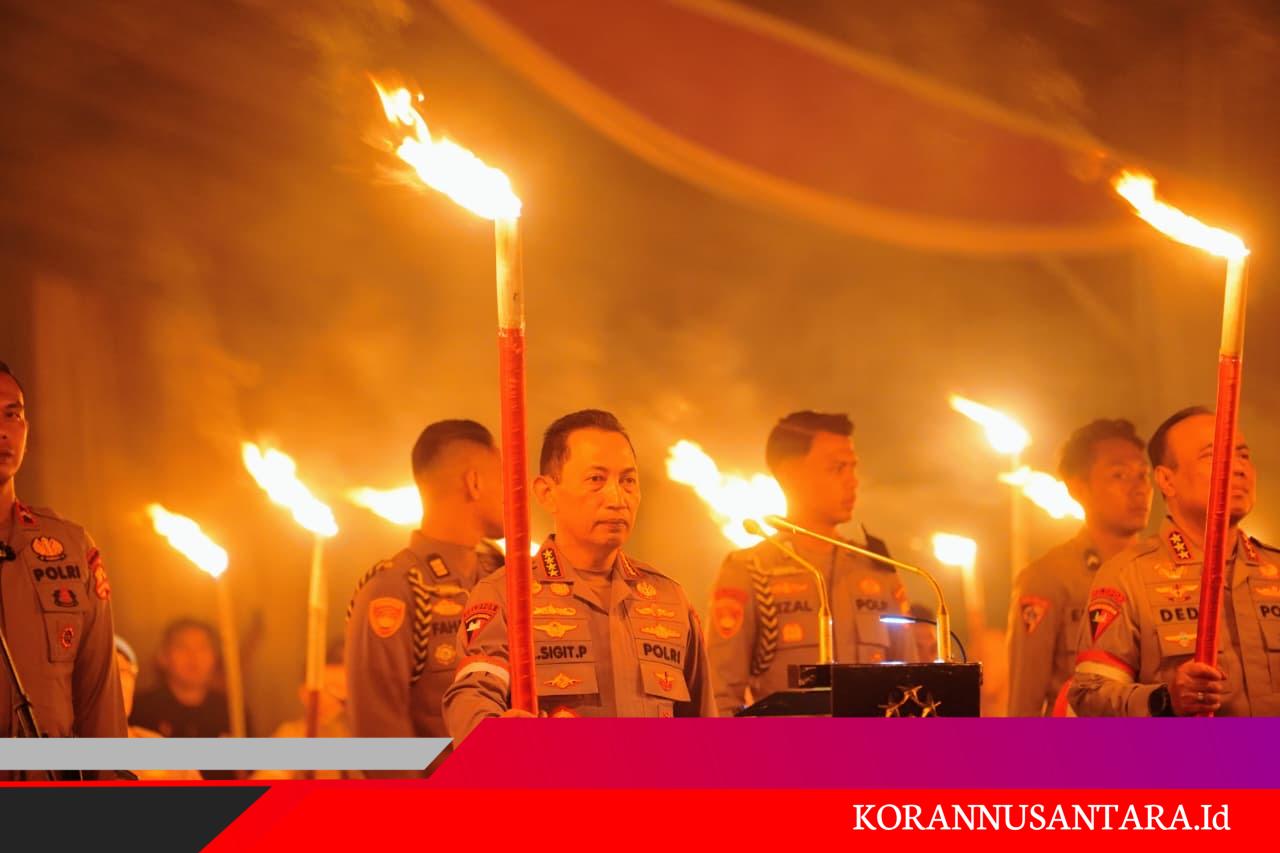 Renungan yang berlangsung dalam suasana gelap dan diterangi ribuan obor itu diikuti oleh Pejabat Utama (PJU) Mabes Polri, para Kapolda, para Karo Ops, serta Kapolres dari seluruh Indonesia, total lebih dari 600 peserta sesuai susunan formasi resmi kegiatan.