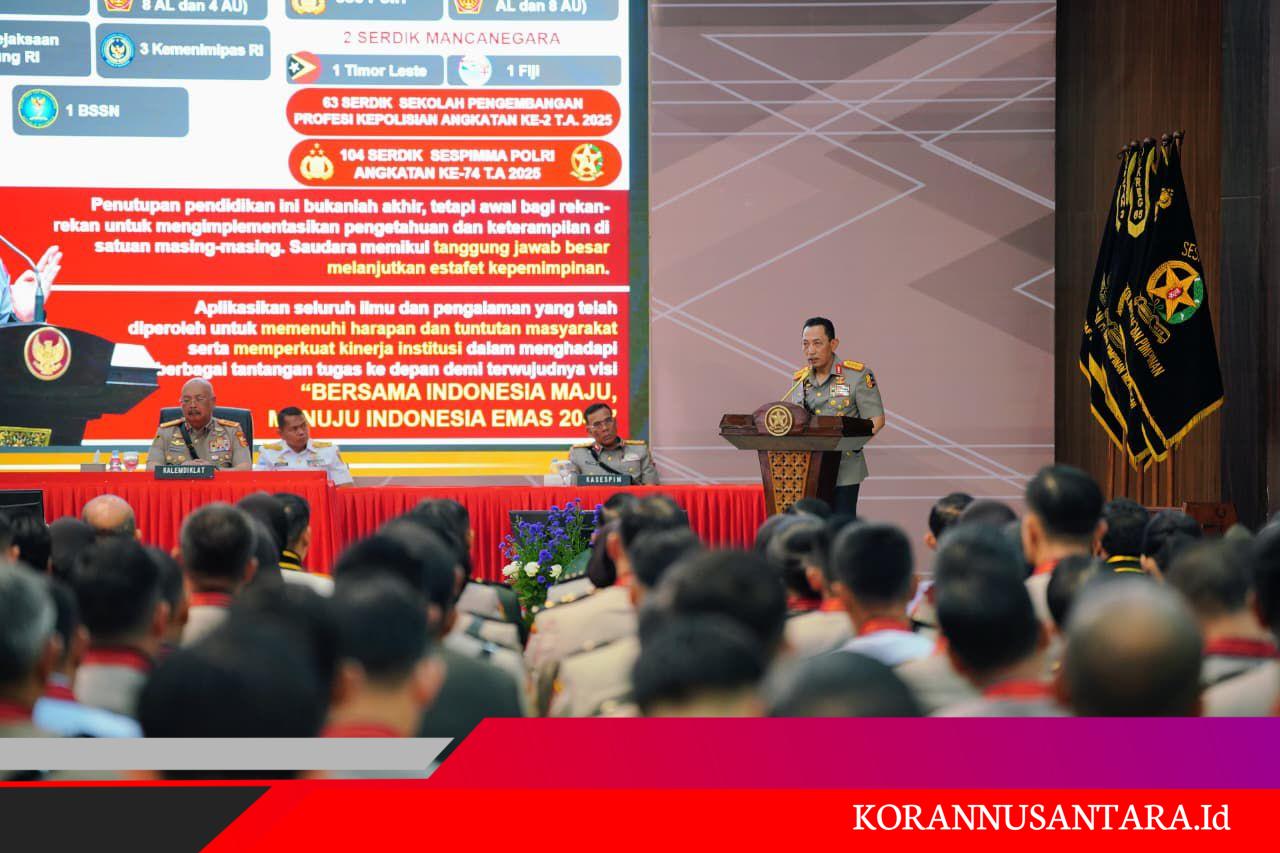 Korannusantara.id, Jakarta – Kapolri, Jenderal Pol Listyo Sigit Prabowo, menegaskan pentingnya sinergi lintas institusi dan penguatan kepemimpinan strategis dalam menghadapi tantangan keamanan nasional yang semakin kompleks. Hal tersebut disampaikannya saat penutupan Pendidikan Sespimti Polri Dikreg ke-34, Sespimmen Polri Dikreg ke-65, SPPK Angkatan ke-2, dan Sespimma Polri Angkatan ke-74 Tahun Ajaran 2025 di Gedung Utaryo Suryawinata Sespim Lemdiklat Polri, Lembang, Jawa Barat, Rabu (17/12/2025).