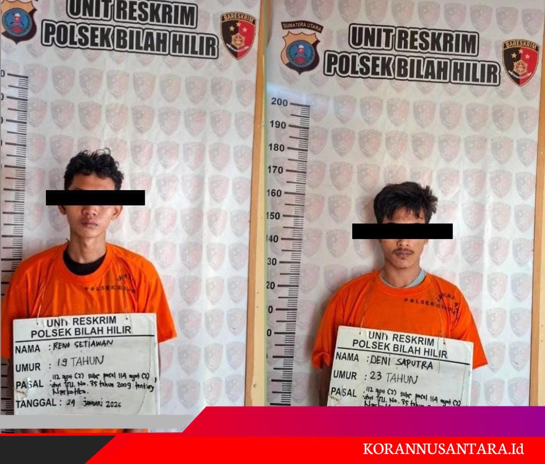 Korannusantara.id – Labuhanbatu, Polsek Bilah Hilir berhasil mengamankan dua orang pelaku penyalahgunaan narkotika jenis sabu di Dusun Sidodadi A, Desa Kampung Padang, Kecamatan Pangkatan, Kabupaten Labuhanbatu, Jumat (23/1/2026) malam.