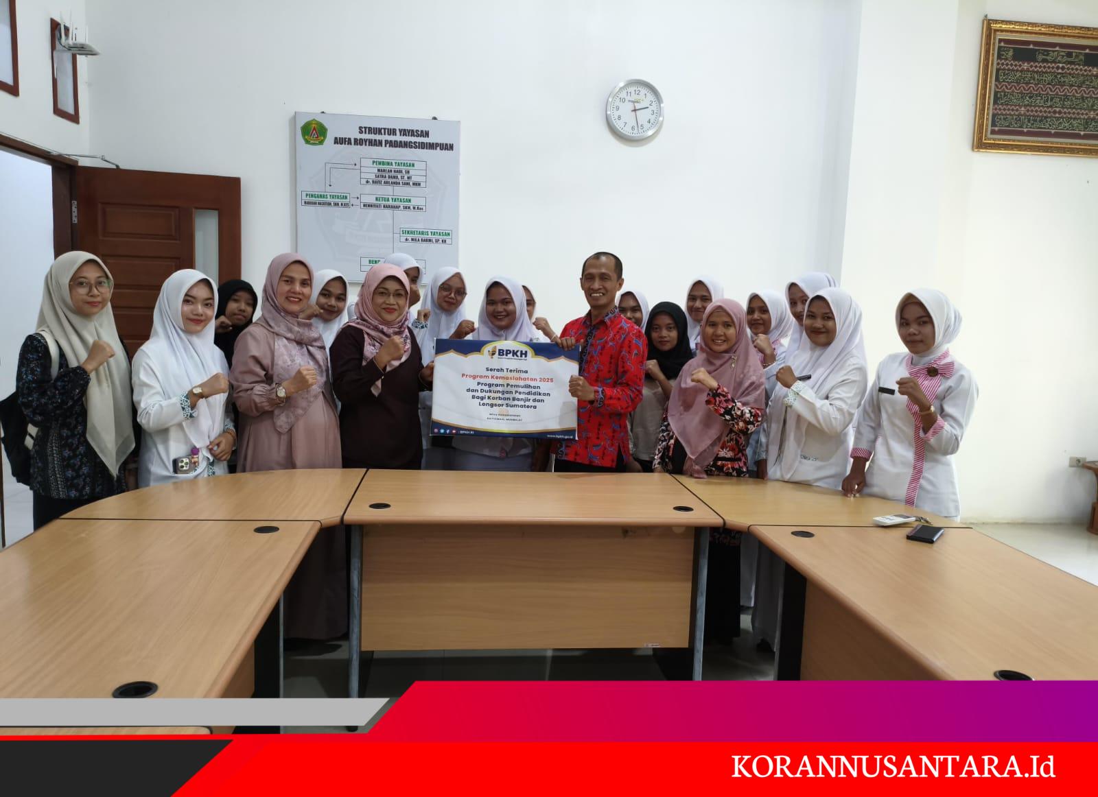Korannusantara.id – Padangsidimpuan, Mahasiswa Universitas Aufa Royhan menerima bantuan biaya pendidikan dari Bank Muamalat, khusus bagi mahasiswa yang terdampak bencana alam sepanjang tahun 2025. Bantuan ini diberikan sebagai bentuk kepedulian nyata terhadap kelangsungan pendidikan generasi muda di tengah kondisi sulit akibat bencana seperti banjir dan angin kencang.