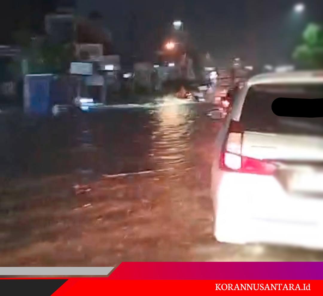 Meskipun air sudah mulai naik kebadan jalan, pengendara mobil khususnya sudah mulai memperlambat laju kendaraan meskipun tetap bisa dilalui, namun sudah mulai ada tanda-tanda kemacetan dan air terlihat terus semakin tinggi.