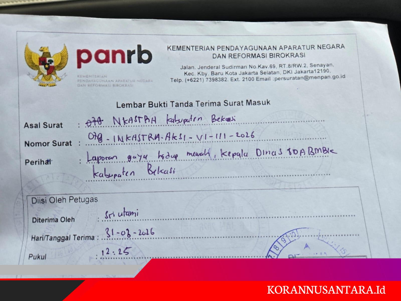 Ket. INKASTRA Laporkan Kepala Dinas SDABMBK Kabupaten Bekasi ke Kemenpan RB Jakarta Foto : Ist