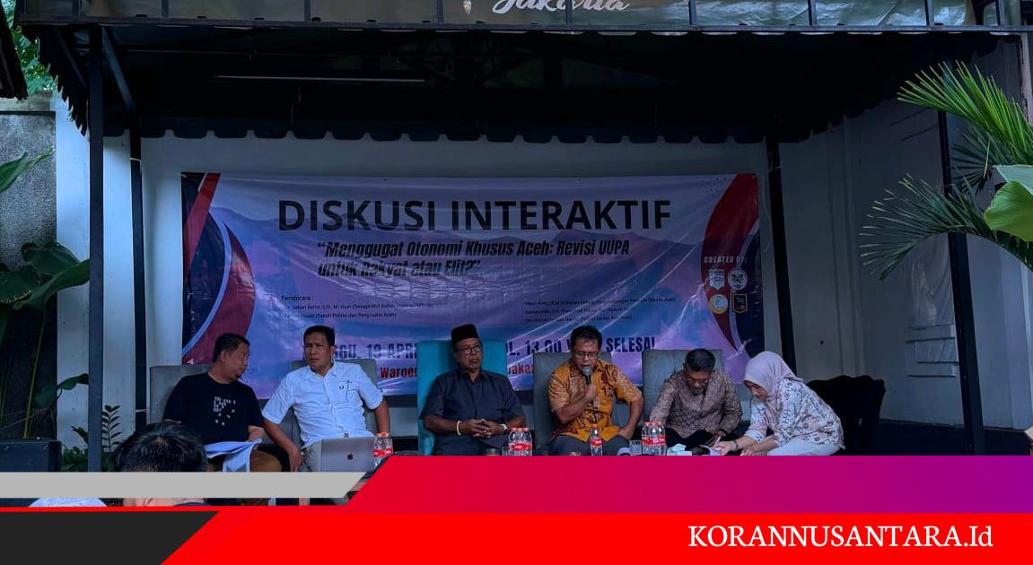 Jakarta – Kolaborasi lintas organisasi mahasiswa dan pemuda Aceh di Jakarta menggelar diskusi interaktif terkait revisi Undang-Undang Pemerintahan Aceh (UUPA). Kegiatan bertajuk “Menggugat Otonomi Khusus Aceh: Revisi UUPA untuk Rakyat atau Elit?” itu berlangsung pada Minggu (19/4/2026) siang di Warung Aceh Garuda, Jakarta.