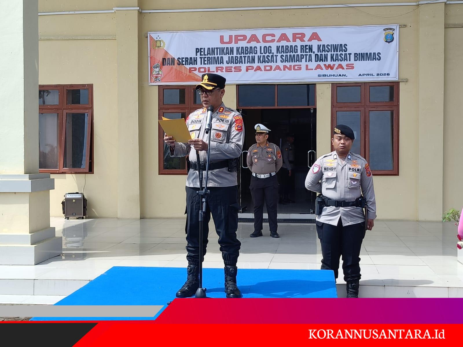 Korannusantara.id – Padang Lawas, Kepala Kepolisian Resor Padang Lawas, AKBP Dodik Yuliyanto, memimpin upacara pelantikan dan serah terima jabatan sejumlah pejabat utama di lingkungan Polres Padang Lawas, Senin, 20 April 2026.