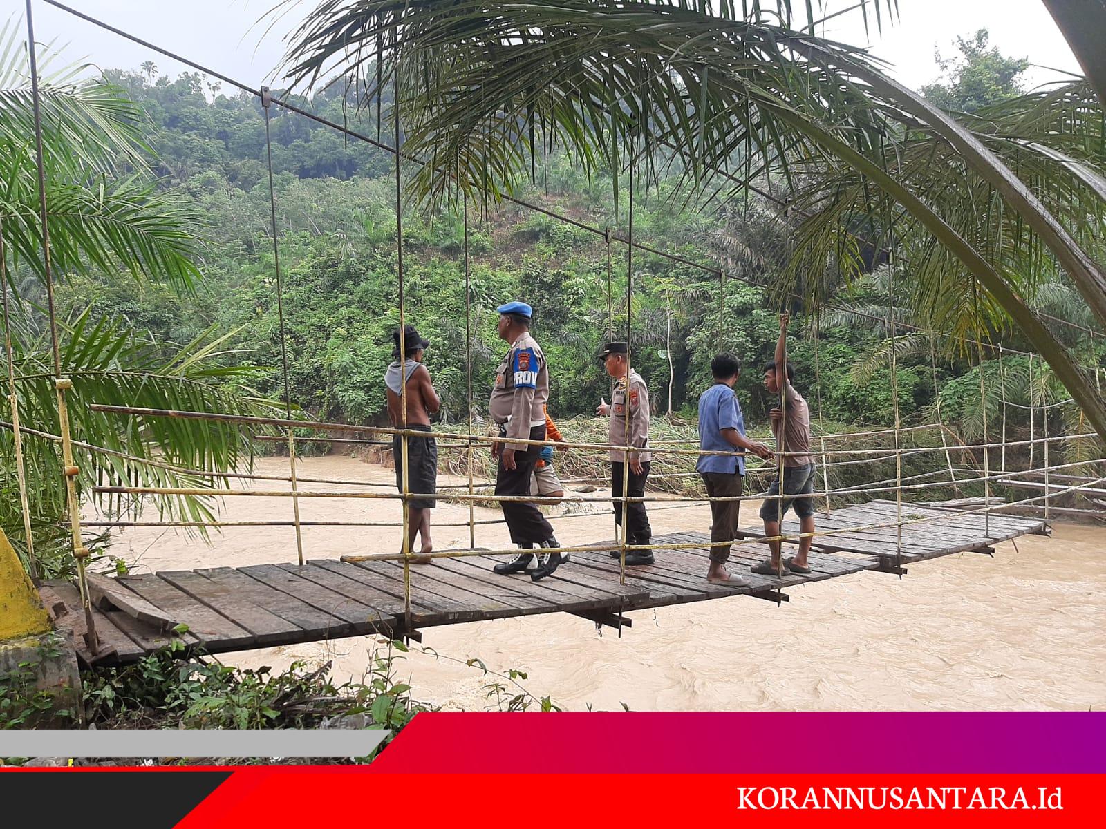 Kapolsek Padang Bolak Tinjau Kerusakan Dua Jembatan Akibat Luapan Sungai Batang Ilung, Satu Jembatan Putus Total